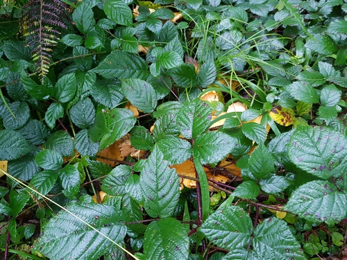Foto: Autsch! Da tut die Lese ja schon beim Anschauen weh! Philipps schöne Pfifferlinge hatten sich unterm dichten Brombeergestrüpp verschanzt. Eine Gartenschere wäre hier wohl hilfreich gewesen.