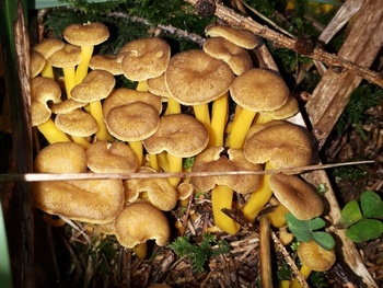 Heute dann bereiteten mir zwei andere Pilzarten noch mehr Freude. Auf einer Wiese, cirka 20 Meter vom Waldrand entfernt, fand ich herrliche Flockenstielige Hexenröhrlinge. Ich habe sie in Olivenöl eingelegt.