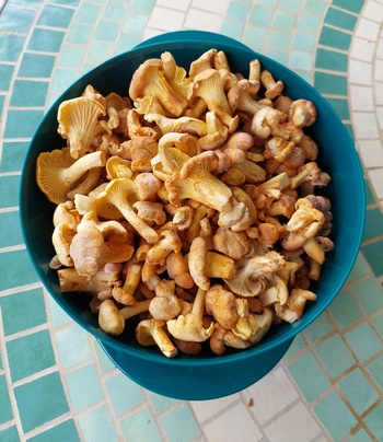 Einen Teil der schönen Pfifferlinge bekamen unsere lieben Nachbarn Heidi und Hans. Der Grossteil wird dann morgen unseren Besuch beglücken.