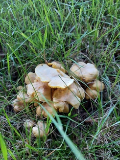 Den heutigen Höhepunkt setzten allerdings die Amethystschuppigen Pfifferlinge (1. Foto rechts), die ich an den Waldrändern in den Wiesen fand. Sie waren alle noch jung und knackig und wuchsen büschelweise. Ein Büschel wuchs inmitten einer wilden Rauke. Hier fehlte nur noch das Salatdressing. Aber nach einer Geschmacksprobe liess ich den bitterscharfen Salat lieber stehen.