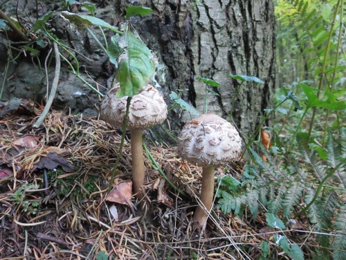Foto: Die Letzten ihrer Zunft, nämlich der Speisepilze, scheinen diese zwei Safranschirmlinge zu sein. Während aus anderen Bundesländern zum Teil noch tolle Pilzfunde gemeldet werden, scheint es im hohen Norden dahinzugehen mit dem Pilzjahr. (Foto © Dorit)