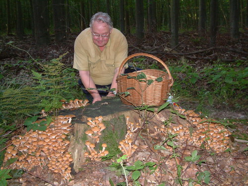 Foto: Wenn das kein gutes Omen für die nachmalige Ernte von Heinz ist: Dieter Sdun aus Dornstedt bei Querfurt und damit ein Landsmann von Heinz, hebt ein gewaltiges Nest von Hallimasch im besten Alter aus.