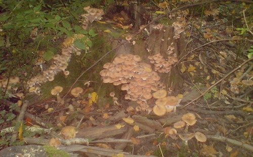 Foto: An diesem von Hallimasch besetzten Stuken hat sich Heinz heute versorgt. Morgen gedenkt er noch einmal auszurücken, um zur Nachlese anzutreten (Foto © Heinz).