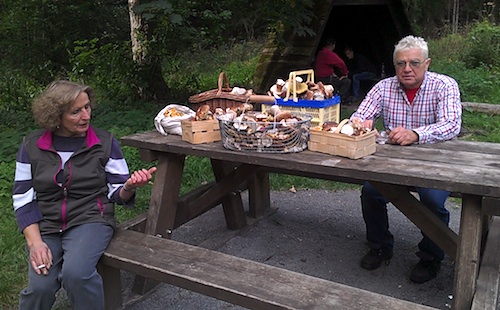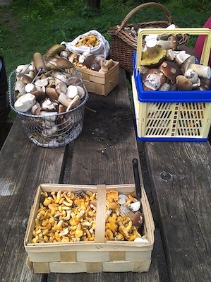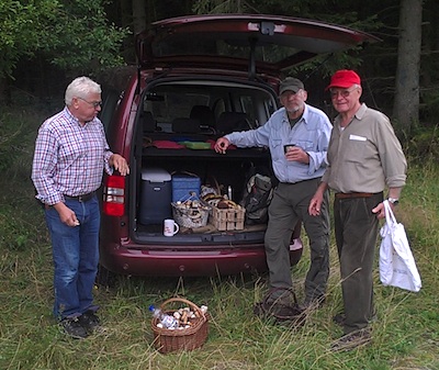 Foto rechts: Bis auf einen Korb ist bereits alles unter Dach und Fach. Das "Pilzteam Blumenberg" hat einmal mehr große Ernte gemacht. (Foto © Klaus Blumenberg)