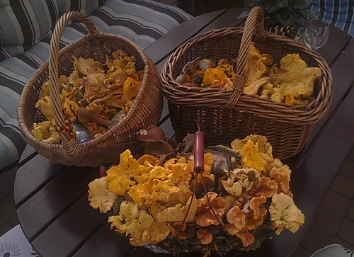 Foto: Auch wenn hier schon umverfrachtet wurde, die Körbe werden leichter und lichter. Wo vor zwei, drei Wochen noch Pifferlinge und davor Steinpilze ordentlich Gewicht brachten, sorgen jetzt Fliegengewichte wie Trompetenpfifferlinge oder - in anderen Regionen - Herbsttrompeten für müheloseren Transport aus dem Wald.