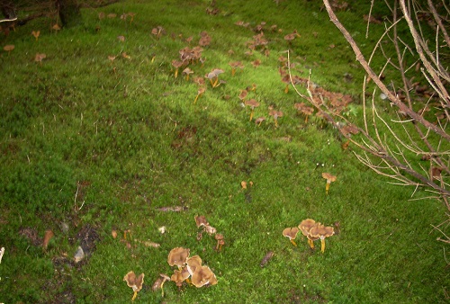 Steinpilze, wie sie von Hans-Jürgen bei Lüneburg gefunden hat, fanden wir nicht. Um so überraschter waren wir, dass wieder Hallimasch gewachsen war. Pfifferlinge und Trompetenpfifferlinge haben wir in ausreichender Zahl gefunden.