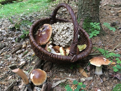 Foto: Seit vier Wochen schon findet Kurt in seinen Revieren hauptsächlich Röhrlinge, Schirmpilze, Perlpilze und Täublinge. Und viele junge Steinpilze und Maronen wachsen nach.