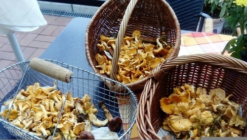 Foto: Das Ergebnis des langen Pilzganges bestand hauptsächlich im Fund von Pfifferlingen. (2 Fotos © Klaus B.)