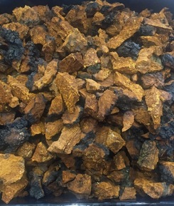 Foto: Hier ein Chaga-Erntestück mit der Sicht auf das von der schwarzen Außenschicht eingefasste innere Fruchtfleisch.