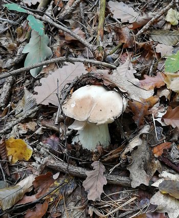| Da hatte sich Frank mehr erhofft: von seiner Runde bei Halle/Saale kehrte er nur mit dem auf dem Foto rechts gezeigten Frauentäubling im Körbchen zurück. Die Flockenstieligen Hexen waren zu alt, von den erhofften Sommersteinpilzen weit und breit nichts zu sehen. Was blieb, waren Fragen: Hatte es zu wenig oder zu viel geregnet? Wo sind die Maipilze geblieben? Die Antwort kennen wir alle: spielt das Wetter nicht mit, machen die Pilze ganz gelassen eine Pause. Um ein paar Wochen später oder erst im nächsten oder übernächsten Jahr wieder da zu sein. (Foto © Frank) (23. Mai 2020) Pilzticker ST 32 |  |