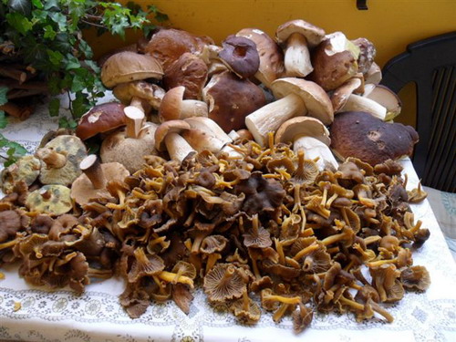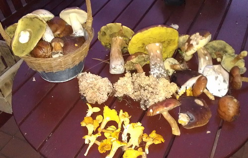 Auch Steinpilze! Sogar die Pfifferlinge waren bester Qualität, was auf dem leider nicht ganz so scharfen Foto gut zu erkennen ist. Hingegen war die Ausbeute an Maronen gering. Viele waren schon madig.