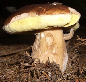 Foto links: Es ist offenbar ein Sommersteinpilz, Boletus aestivalis. Darauf deutet der dunkle Stiel hin, der, soweit erkennbar, mit der Hutfarbe übereinstimmt. "Er wog 700 Gramm und war von guter Qualität", so Klaus.