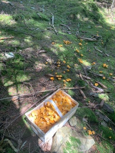 auch gestern konnte ich wieder ganz unverhofft 1,8 Kilo Pfifferlinge ernten.