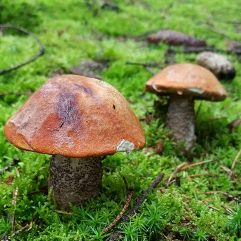Bereits kurz nach 7 Uhr am Sonnabend waren wir in unserem Revier bei Schleusingen am südlichen Rand des Thüringer Waldes. Schon der Fichtenwald zauberte gleich zu Beginn unserer Runde wunderbare Steinpilze, Rotkappen (Foto rechts) und Maronen in den Korb.