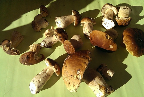 Das Foto rechts lässt erkennen, dass es viele Steinpilze in sehr guter Qualität gab.