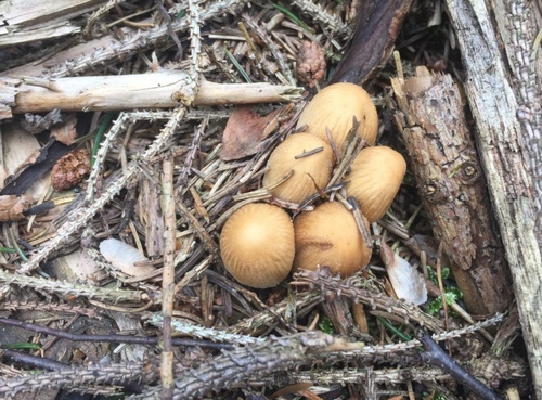 Ich fand viele alte Graublättrige Schwefelköpfe, die ersten Glimmertintlinge, einige Frühlingsweichritterlinge und kleine Helmlinge.