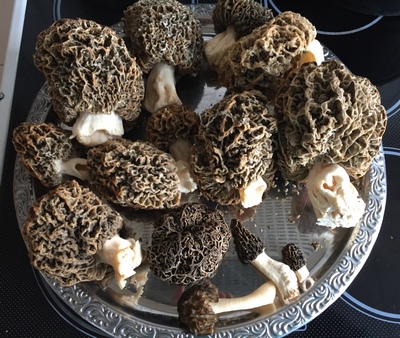Heute gab es Grund zur Freude: 1,5 Kilo schönster Speisemorcheln sind es geworden! Die größte wog 128 Gramm. Schön