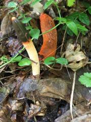 Am Wochenende konnte ich erste kleine Graue Wulstlinge entdecken sowie Nester von noch ganz kleinen Grubenlorcheln* deren Stiele gerade beginnen, grau zu werden. Erstmalig entdeckte ich einige Schwarzblauende Röhrlinge, zwei kleine Nester junger Blutegerlinge und einen Kurznetzigen Hexenröhrling. In einem anderen Wald konnte ich mir immerhin zwei fette Flockis (einer siehe Foto rechts) und einen Anischampignon für die Pfanne sichern. Das war's aber auch schon.