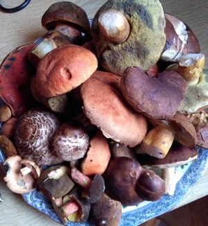 Wo es schon kaum noch Pilze bei uns gibt, kam die Rettung mit Gaben aus dem Wald von ganz anderer Seite. Letzten Donnerstag bekam ich ein halbes