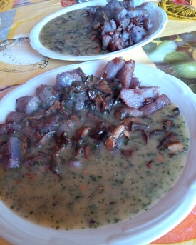 Foto: Das zünftige Mahl auf halbem Weg. Ganz links außen die Steinpilze in einer Sahnesoße. (4 Fotos © Heike)