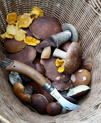 meinen Pilzkorb. Auch einige Gelbstielige Trompetenpfifferlinge gesellten sich