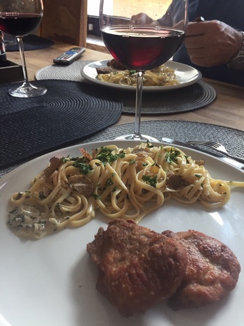 So gab es heute bei uns ein Pilz-Trösterli: Pasta in Trüffelrahmsoße. Ich habe einmal wieder ein paar frische Trüffel bekommen.