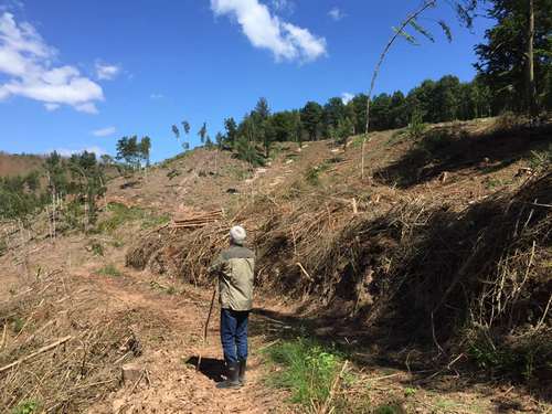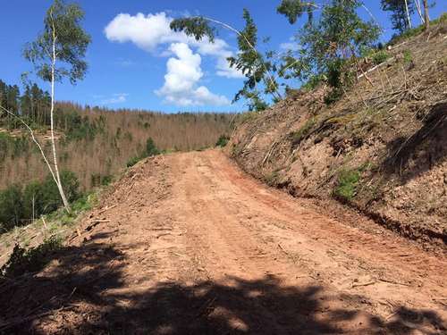 Nach wenigen Kilometern am Auto wieder angekommen, beschlossen wir, ein weiteres Fichtenstück aufzusuchen. Wir fanden vor, was wir auch hier befürchtet hatten: nichts als kahle Hänge. Auch hier wurden sämtliche Fichten bereits komplett beseitigt. Nun gibt es von so vielen weitläufigen Fichtenwäldern, in denen wir so oft auf erfolgreicher Pilzjagd waren, kein einziges Stück mehr.