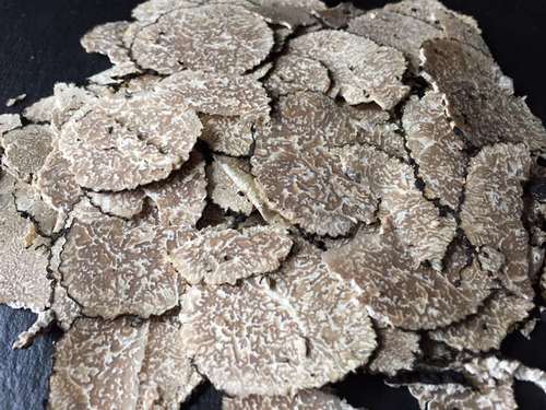 Foto: Die fein gehobelten Scheibchen der Trüffel für das Trüffelcarpaccio.