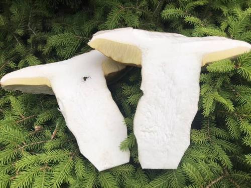 Foto: Es sind Schlemmertage im Hause Heike & Dieter. Das kontinuierliche Wachstum der Sommersteinpilze sorgt nahezu täglich für leckere Pilzgerichte. Das zweite Foto zeigt ein Exemplar mit einem auffallend walzenförmigen dicken Stiel. (2 Fotos © Heike)