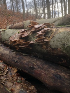 2 Fotos: Die Austernseitlinge quirlen jetzt in allen Ecken des Waldes aus dem angeschlagenen Gehölz, siehe auch das 2. Foto. Heike wird in den nächsten Tagen sicher nachlesen. (4 Fotos © Heike)