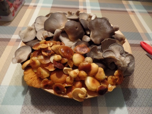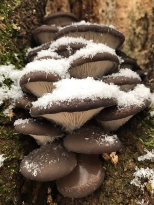 Foto: Reichlich Austernpilze und Winterrüblinge hat Jürgen im winterlichen Wald gefunden. Für köstliche Pilzgerichte zum Advent ist damit gesorgt.