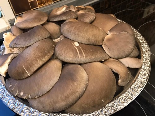 Foto: Sie kamen zum Einsatz. Herrliche Austernseitlinge auf silberner Schale.