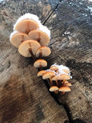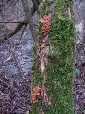 mit minus fünf Grad in der Nacht und ein wenig Schnee ist wahrscheinlich nur vorübergehend der Winter in Rudolstadt eingezogen. Das aber macht den Samtfußrüblingen an einigen Weidenstümpfen an einem Teich mitten in der Stadt nichts aus. Die Frostschnecklinge machen sich dagegen rar.