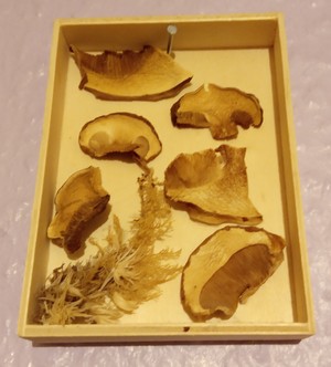 die ersten Austernpilze konnten gesichert werden. Sie waren nun erntebereit (z. B. 1. Foto rechts). Parallel haben wir reichlich Birkenporlinge getrocknet (2. Foto rechts). Unglaublich, wie viele es gibt. So manches Jahr zeigen sie sich kaum, und dann auf einmal in solchen Massen.