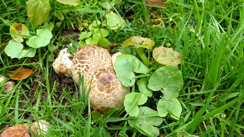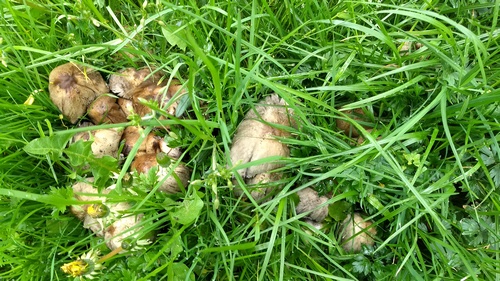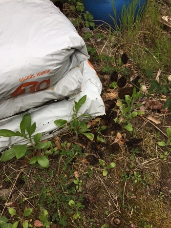 Nachdem ich mit dem freundlichen Einverständnis der Besitzer wieder gute Ernte gemacht hatte, meinte die nette Hausherrin, sie habe bei meinem letzten Besuch leider vergessen, mir zu sagen, dass weiter hinten auf dem Grundstück auch noch welche wachsen würden, gleich an den Säcken.