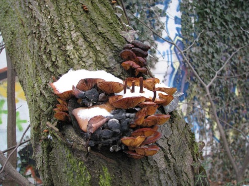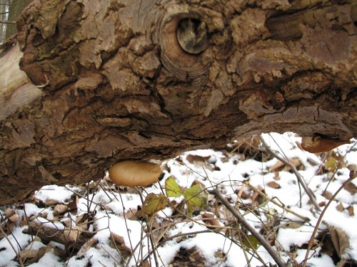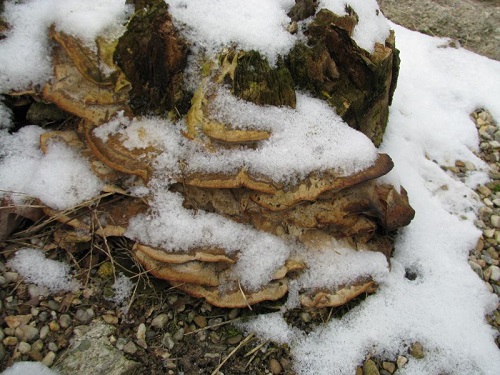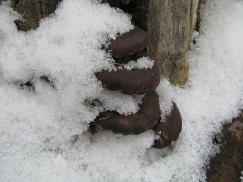 Foto: Alternde Austernpilze unterm Schnee. Essbar.