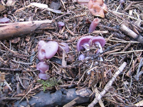 Foto: Wintertrompetenschnitzlinge 1, ungenießbar. Sie wachsen fast immer auf Holzstreu.