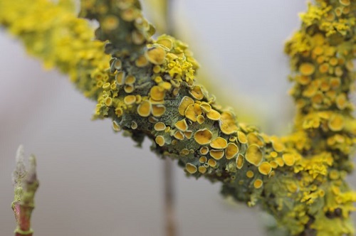 Dank der Hilfe meiner Vogtländischen Freunde konnten inzwischen auch meine eigenen Bilder als eine der zwei Gelbflechtenarten mit den Apothezien (Pilze der Flechte) bestimmt werden.