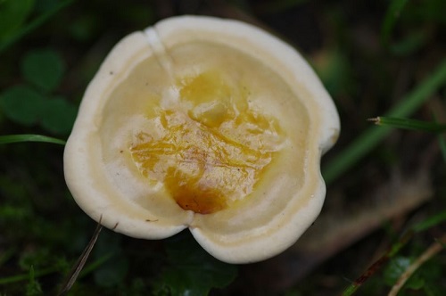 Einen ersten kräpeligen Hainbuchenröhrling und einen Rotfußröhrling konnte ich auch sichten. Einen weiteren Holz- und Superheilpilz, nämlich den Glänzenden Lackporling, konnte ich standortreu inmitten der Wiese einfangen. Dort ist vermutlich ein Stück Holz in der Erde, von dem er sich ernährt. Auch der Steinpilz und den Boletusanzeiger, nämlich den Mehlräsling, fand ich. Er schmeckt sehr lecker. Aber auch die giftigen Champignons mischen sich unter die essbaren Arten. Also Vorsicht bei chromgelber Stielverfärbung (Siehe Foto).