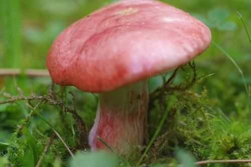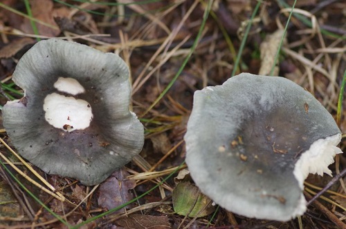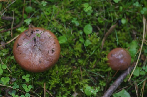 Der (leicht) giftige Bluttäubling ist übrigens der einzige Täubling mit herablaufenden Lamellen. Es gibt ihn auch als Albino, so dass man nur auf dieses Merkmal, den scharfen Geschmack und das Vorkommen unter Kiefer zurückgreifen kann bei der sicheren Bestimmung.