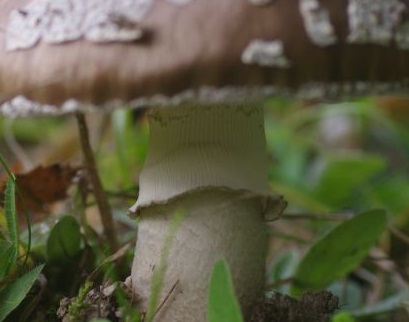 2 Fotos: Die Manschette des tödlichen Grünen Knollenblätterpilzes ist gerieft. Bei älteren Exemplaren hängt sie schlaff herab.