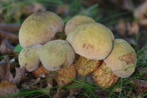 Foto: Ein kräftiges Büschel Netzstieliger Hexenröhrlinge mit sieben Familienmitgliedern. So sieht man sie auch nicht jeden Tag.