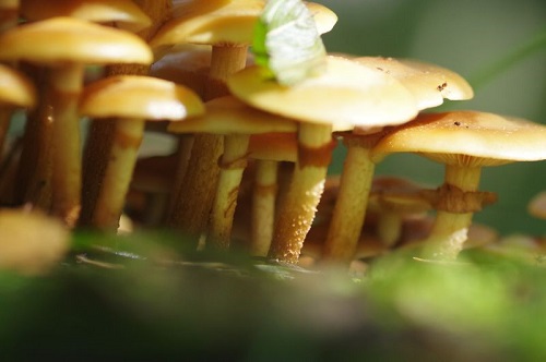Foto: Stockschwämmchen 1, essbar. Gut sind hier die Flocken auf den Stielen zu erkennen, ein wichtiges Merkmal.