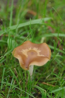 Foto rechts: Auch mit der Herbstlorchel ist das so eine Sache. In vielen Pilzbüchern wird sie als guter Speisepilz beschrieben. Doch nicht wenig Pilzfreunden schlägt sie auf Magen und Darm. Peter Rohland lässt sie in seinen Beratungsstunden nicht als Speisepilz durchgehen.