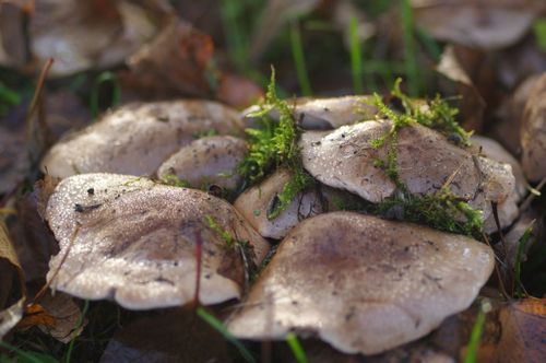 Foto rechts: Nicht nur der Gemeine Erdritterling ist giftig, seine Artgenossen wie etwa der Mausgraue Erdritterling stehen in dem gleichen Verdacht. Deshalb heißt es: Finger weg von diesen Pilzen!