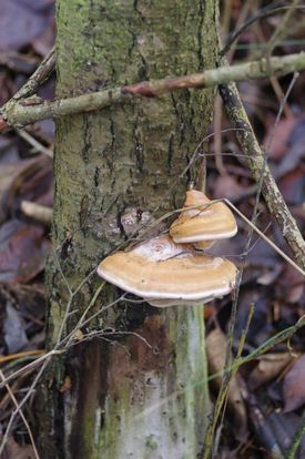 Foto rechts: Rotrandiger Porling, ungenießbar.