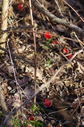Da war es gut, dass Nando mir noch eine weitere Stelle verraten hatte, wo er mit anderen Experten auch noch knipsen möchte. Und tatsächlich, da standen sie! Es ist immer wieder eine Augenweide, diese auffälligen Pilze auf dem noch kahlen Waldboden zu sehen. So konnte ich für Euch ein paar Fotos machen.
