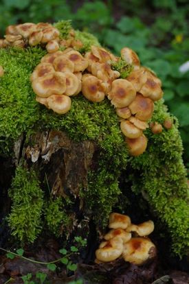 Foto rechts: Stockschwämmchen, guter Speisepilz.