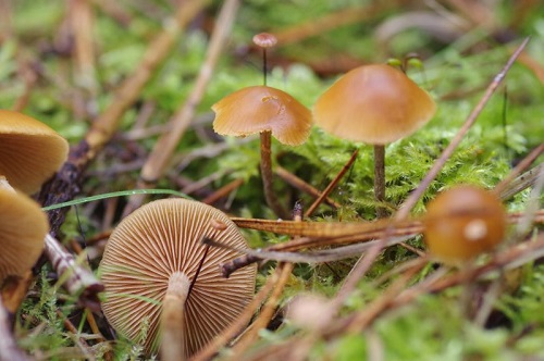 Foto: Gift- oder Nadelholzhäublinge. Wie der Grüne Knollenblätterpilz enthalten sie das tödlich giftige Amanitin. Gut 100 Gramm frischer Gifthäublinge töten einen Menschen.