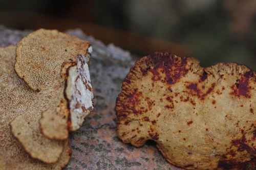 Foto: Riesenporling - Essbar. Nur ganz jung sind sie wirklich essbar, denn sie werden rasch säuerlich. Junge Pilze eignen sich auch gut, um eine Pilzbrühe zu kochen, die vielfältig verwendet werden kann.
